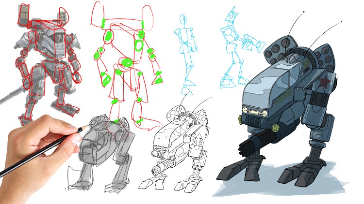 Well, this is the course for you. We will go through all the steps needed for you to be able to draw the coolest bots around. Referencing real world items, and using those to help us base our drawings and designs in reality.