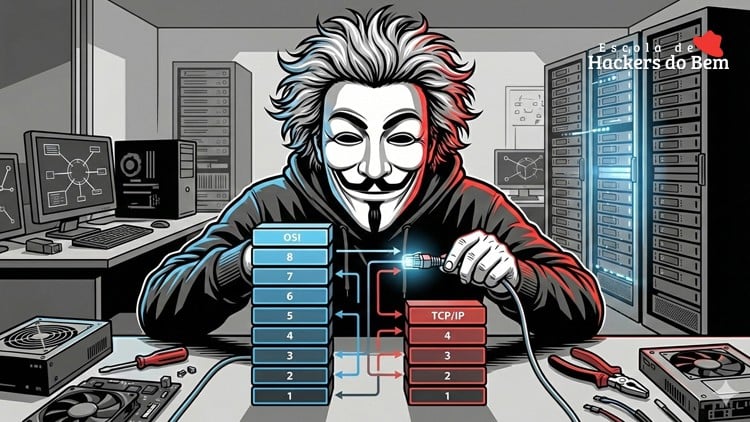 Este curso foi criado para você que quer construir uma base sólida sobre como os dados são organizados e transmitidos em redes de computadores. Aqui você vai estudar os fundamentos do TCP/IP e do Modelo OSI de forma clara e objetiva, entendendo como essas estruturas funcionam e por que elas são essenciais para quem quer trabalhar como Hacker do Bem.